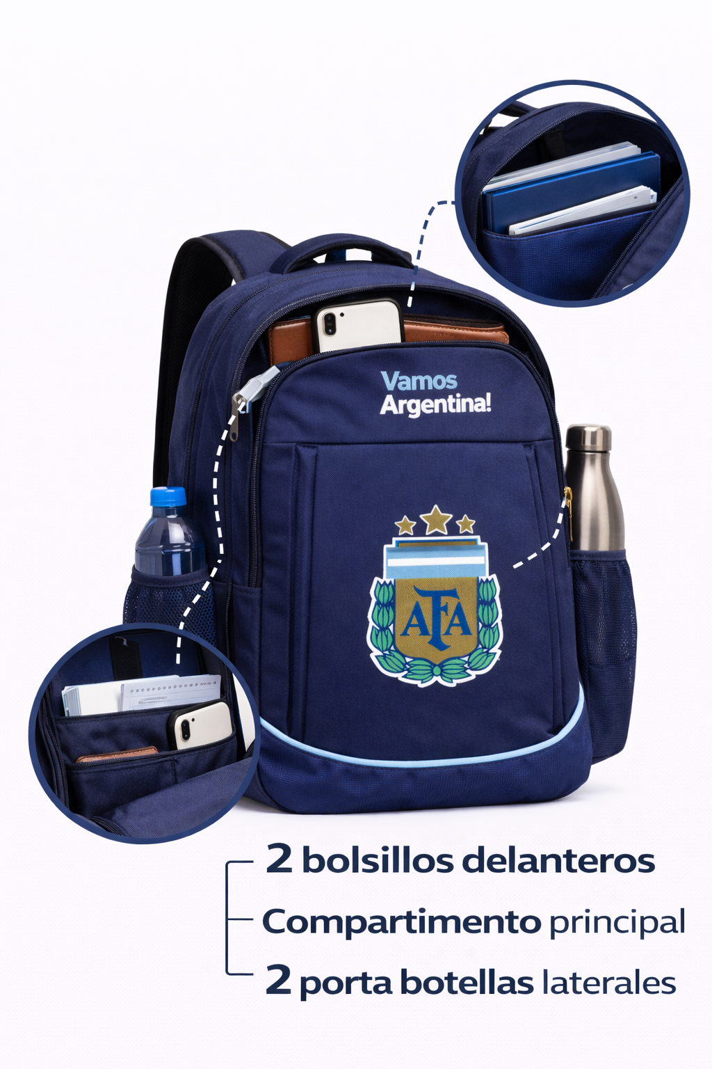 🇦🇷⭐ Mochila Selección Argentina – AFA ✔ Diseño oficial inspirado en la Scaloneta ✔ Reforzada y resistente para uso diario ✔ Gran capacidad para libros y carpeta A4 ✔ Apta para notebooks hasta 18” ✔ Ideal para colegio, viajes y uso urbano